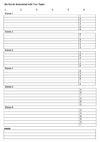 The last stanza of your poem will be 3 lines long (a tercet), using 2 of your chosen 6 words per line: Please note that the collection is moderated. You pick 6 words, rotate them as the end words in 6 stanzas and then include 2 per of the words per line in your final stanza. So yeah, i've been meaning to post something about the poetic form known as the sestina for quite some time. You will use 6 repeating words throughout the poem.